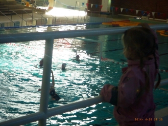 Huhtikuu 2014. Jyväskylän Saukot vs. Espoon Cetus 18-12 Aalto-Alvarissa.Lauantaina 2014-04-26 illalla kylpylävieraat vaihtuivat vesipallonaisiin, jotka kilvoittelivat semifinaalissa SM-finaaliin pääsemiseksi. Jyväskylän Saukot oli sen verran parempi, että voitti Espoon Cetuksen 18-12 ja sitten sunnuntaina 20-15. Yleisöä riitti niin, että buffettikin oli kovilla. Kuvat: Pertti Manninen. Isonna! |