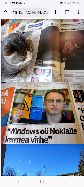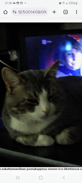 Helkingin Sanomat - nro 3100 - Torstai 26.6.2025. - Arkisto. - Rasmuksen matkassa 17 vuotta. Kiitos. Lue! - 2008 - 2009. Täällä - 2010 - 2011. Täällä - 2012 - 2013. - Täällä --- Arkisto. 3.2.2014. Valtiontalolla yllätysten päivä. Vielma voitti kiistan Valtiontalosta. Keskisuomalainen perjantaina 24.01.2014. Kissa: Rasmus. Kuvat: Pertti Manninen. Isonna! - 9.4.2014. "Suomi joutuu muuttamaan tietolainsäädäntöään". Keskiviikkona 09:29 - 15:57 HS tietolainsäädännöstä - Keslisuomalainen Nokian karmeasta virheestä - Agricolan muistamista Laukaan kunnantalolla - Pinkki mopo kaartaa saksalaisen kaupan pihaan (LIDL). Kuvat: Pertti Manninen. Keski-Suomi. Jyväskylä ja Laukaa. Isonna! - 18.4.2014. "... kun Rasmuskin siinä oleili hollilla." Keskisuomalaisen ja muidenkin lehtien tv-kriitikko Marko Ahonen kirjoitti Pitkäperjantain tv-ohjelmista otsikolla "Surujuhla ilman surua". Hän vei kynän kädestäni. Kun aamulla tutkailin ohjelmistoa niin Helsingin Sanomista kuin Keskisuomalaisestakin, niin en mitään löytänyt. Ajattelin mielessäni, miksi ei voitaisi esittää joka pääsiäinen Pasolinin "Matteuksen evankeliumia", jonka olen nähnyt vuosikymmenten aikana ainakin kymmenen kertaa. Kanavia Ylelläkin on ihan riittävästi saada se johonkin rakoseen sovitettua, mielestäni. Päätin sitten yrittää etsiä sen jostakin kätköstä, DVD:n olen hankkinut joku vuosi sitten jostain alennusmyynnistä. Ohjelmakarttaa aikani tutkisteltuani, pääsin sitten sivun eteenpäin ja hämmästykseni oli suuri: toimittaja Marko Ahonen kirjoitti samasta aiheesta ja eihän siinä sitten kannattanut kuin kiireesti kuvata sivu, kun Rasmuskin siinä oleili hollilla. Myöhemmin hain paremman kameran ja tallensin artikkelin. Kuvat perjantaina 2014-04-18 klo 07:05 ja 07:15. - 24.7.2014. "Väsähtänyt kissa nauttii olostaan isännän uudella vuoteella." Kuvaviikko keskiviikosta 09.07.2014 alkaen. Perjantai 11.07. Väsähtänyt kissa nauttii olostaan isännän uudella vuoteella. Sunnuntai 13.07. Gaza palaa Sataman kahvilan terassin ruudussa. Suomalainen Vilja ei varmaankaan oikeasti ollut harmistunut päästeessään MM-loppuotteluun. Kuvat: Pertti Manninen. Laukaa. - 24.7.2014. "Kissa pöydällä! Rasmus raapii ikkunaa päästäkseen sisätiloihin." Kuvaviikko keskiviikosta 09.07.2014 alkaen seuraavan viikon perjantaihin 18.07.2014. Torstai 17.07. Kissa pöydällä! Rasmus raapii ikkunaa päästäkseen sisätiloihin. Torstai 17.07. Kissa pöydällä! Rasmus raapii ikkunaa päästäkseen sisätiloihin. Perjantai 18.07. Ravikuningas viettää eläkepäiviään Laukaan vihreällä niityllä. Kuvat: Pertti Manninen. Laukaa. -l 9.8.2014. "Rasmus-kissa nukahtamaisillaan juomakuppinsa viereen tv:n lähettäessä ohjelmaa Tove Janssonin elämästä tutun musiikin soidessa." Tove Jansson 100 vuotta tänään. Kuva: Rasmus-kissa nukahtamaisillaan juomakuppinsa viereen tv:n lähettäessä ohjelmaa Tove Janssonin elämästä tutun musiikin soidessa. Perjantaina 08.08.2014 klo 18:46. Kuva: Pertti Manninen. Isonna! Katso myös! Joulukuu 2013. "Unelma valkeasta joulusta" - "Ja aamulla ..." Kuvat Mitäs tämä on? - Mutta peikko kulta, miten sait nelosen käytöksestä? Kuvasarja - 29.1.2015. "Rasmus jää kotiin nukkumaan." Matkalla Suomessa keskiviikkona 28.01.2015 Keski-Suomesta Pirkanmaalle 0-kelissä. Rasmus jää kotiin nukkumaan - Koulutytöt vetävät reppupulkkiaan - Mies ja makkaramainos. Kuvat: Pertti Manninen 2015-01-28 keskiviikkona 09:10 - 12:42 matkalla Laukaasta ensin Koivurannan bussilla Jyväskylään ja sitten 9-tietä pitkin Tampereen Kalevaan. Matka jatkui sitten Tampereen Hervannan kautta Loimaalle ja Humppilaan ja takaisinkin lähtöpisteeseen, mutta se on jo sitten ihan oman tarinansa. - 22.4.2015. "LEHTIKATSAUS." HUHTIKUU 2015. LEHTIKATSAUS. VAALIT. ÄÄNEKOSKI. KUVAT Tiistai 21.04.2015. ISO NRO - METRO Kuvat: Pertti Manninen 2015-04-22 aamulla. ISONNA! -l 19.6.2015. "Rasmus-kissakin on erityisen kiinnostunut tästä otuksesta, jonka hän näkee ensimmäistä kertaa elämässään." KESÄKUU 2015. "KUN PEURA KESKEYTTI ILLAN UUTISLÄHETYKSEN ..." KUVASARJA. Ylen uutislähetyksessä torstaina 18.06.2015 valtiovarainministeri Alexander Stubb kertoo Kreikan taloustilanteesta ja ex-pääministeri Esko Aho Venäjän kaupasta yleensä ja maa-alueiden kaupasta. Kuvatekstit ovat samaan aikaan lähetetystä toisesta ohjelmasta, jossa kerrotaan uusista energiamuodoista ja niiden kehittämisestä. Tykkikuva muistuttaa Waterloon taistelun 200-vuotispäivästä ja kirjakuvat Akateemisen kirjakaupan myymisestä Bonnierille. Peura saapuu ikkunan alle ja kiinnittää kaiken huomion tässä uudessa ympäristössä. Rasmus-kissakin on erityisen kiinnostunut tästä otuksesta, jonka hän näkee ensimmäistä kertaa elämässään. Uutislähetys jatkuu Juhannuksen liikenteestä kertovalla jutulla. Kuvat: Pertti Manninen. Uusimaa. Kirkkonummi. Kauhala klo 20:35 - 20:52. ISONNA! https://www.nettisanomat.com/2015/06/19/etusivu.html 20.6.2015. "JUHANNUSAATTONA ENNEN ILTAA." KESÄKUU 2015. JUHANNUSAATTONA ENNEN ILTAA. 39 KUVAA. Kuvat: Pertti Manninen. Ilta-Sanomat ja Iltalehti torstai 18.06.2015. Uusimaa. Kirkkonummi. Lapinkylä ja ympäristö perjantai 19.06.2015 klo 05:06 - 14:08. ISONNA! - 7.22.2015. "KISSAN NIMI ON RASMUS, JOKA NUKAHTAA PAPEREIDEN PÄÄLLE JA KATSELEE KUUTA." HEINÄKUU 2015. PRESIDENTTI SAULI NIINISTÖN SELITYS, MIKSEIVÄT VENÄLÄISET PÄÄSSEET ETYK-JUHLAKOKOUKSEEN JA MUITAKIN KUVIA. 24 KUVAA. KISSAN NIMI ON RASMUS, JOKA NUKAHTAA PAPEREIDEN PÄÄLLE JA KATSELEE KUUTA. Kuvat: Pertti Manninen Ylen uutislähetyksestä teksteineen. Uusimaa. Kirkkonummi. Lapinkylä keskiviikko 01.07.2015 ja torstai 02.07.2015. ISONNA! - 8.8.2015. Rasmus väsähtää telakkauutisiin. Kuva. Pertti Manninen tiistaina 2013-01-15 09:13. HS: Telakalle haetaan pikaratkaisua- Keskisuomalainen: Telakkateollisuuden pelastajaa ei tunnu löytyvän. HEINÄKUU 2015. JUHLAA. TYÖTÄ JA HISTORIAAKIN ERÄÄNÄ HELLEPÄIVÄ