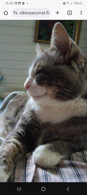 "... Rasmus-kissan nukkuessa jaloissa syötyään maukkaan ateriansa, ..." 2020. Heinäkuu 11.07. Viikkosanomat. Pertti Manninen. Lauantai 11.07.2020 18:13 Kirkkonummen Björkdalissa sateen aina vaan ropistessa, välillä oikeinkin kovasti ja Rasmus-kissan nukkuessa jaloissa syötyään maukkaan ateriansa, jossa oli ekstraa keitettyä seikalaa ilman suolaa." Lue! https://www.nettisanomat.com/2020/07/11/etusivu.html