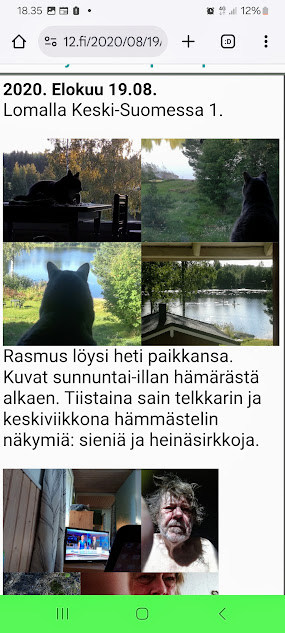 2020. Elokuu 19.08. Lomalla Keski-Suomessa Kiitos kyyditsijälle ja majapaikan järjestäjälle Keski-Suomen Laukaassa Peurunkajärven rannalla. Kuvat ja omakuvat Pertti Manninen 16.08.2020 20:51 - 19.08.2020 18:09. Osa 2 tästä. https://www.nettisanomat.com/2020/08/19/etusivu.html